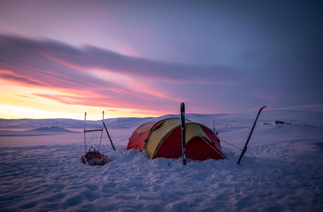 Embark on a guided week-long ski expedition through Finland’s remote Käsivarsi Wilderness, the most mountainous region in the country and home to Finland’s highest peak, Halti (1,324 m).